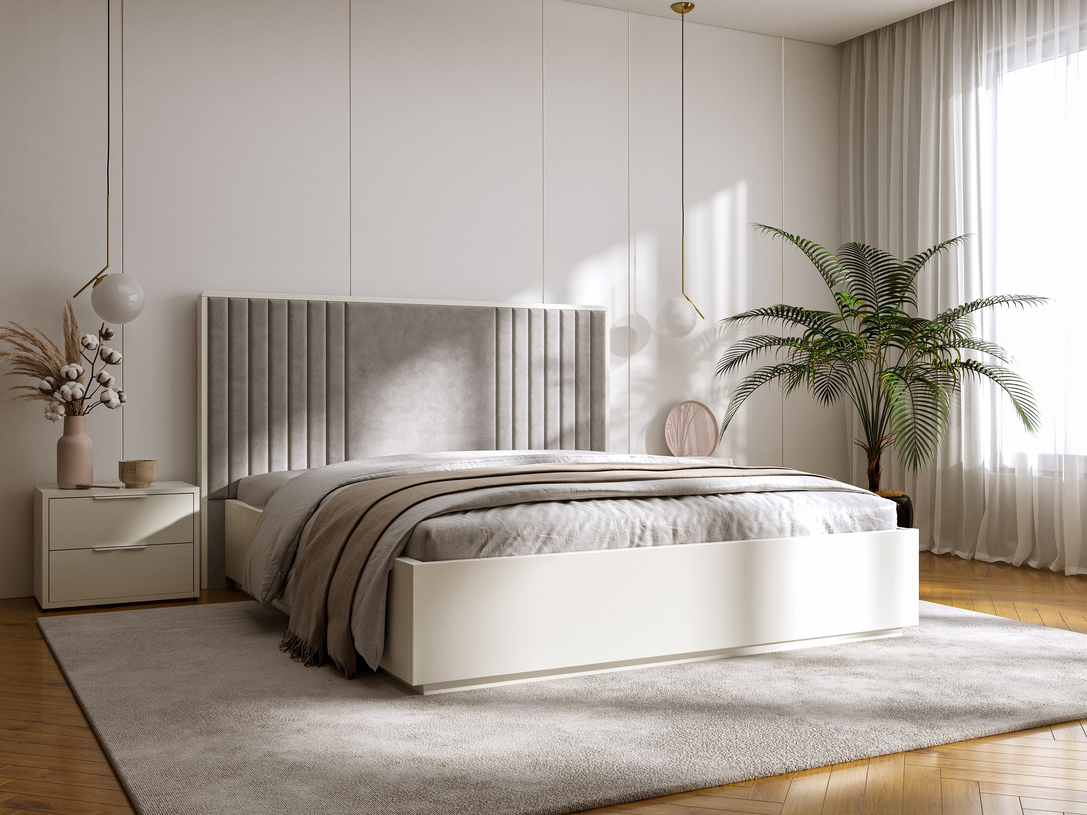 Ліжко «Аделіна» — це поєднання лаконічного дизайну, сучасної естетики та продуманого комфорту. Високе м’яке узголів’я з вертикальною декоративною прострочкою надає ліжку вишуканого вигляду та забезпечує зручну опору для відпочинку, читання чи перегляду телевізора. Універсальний дизайн дозволяє Аделіні гармонійно вписатися у спальню будь-якого стилю — від мінімалізму до модерну та скандинавського.