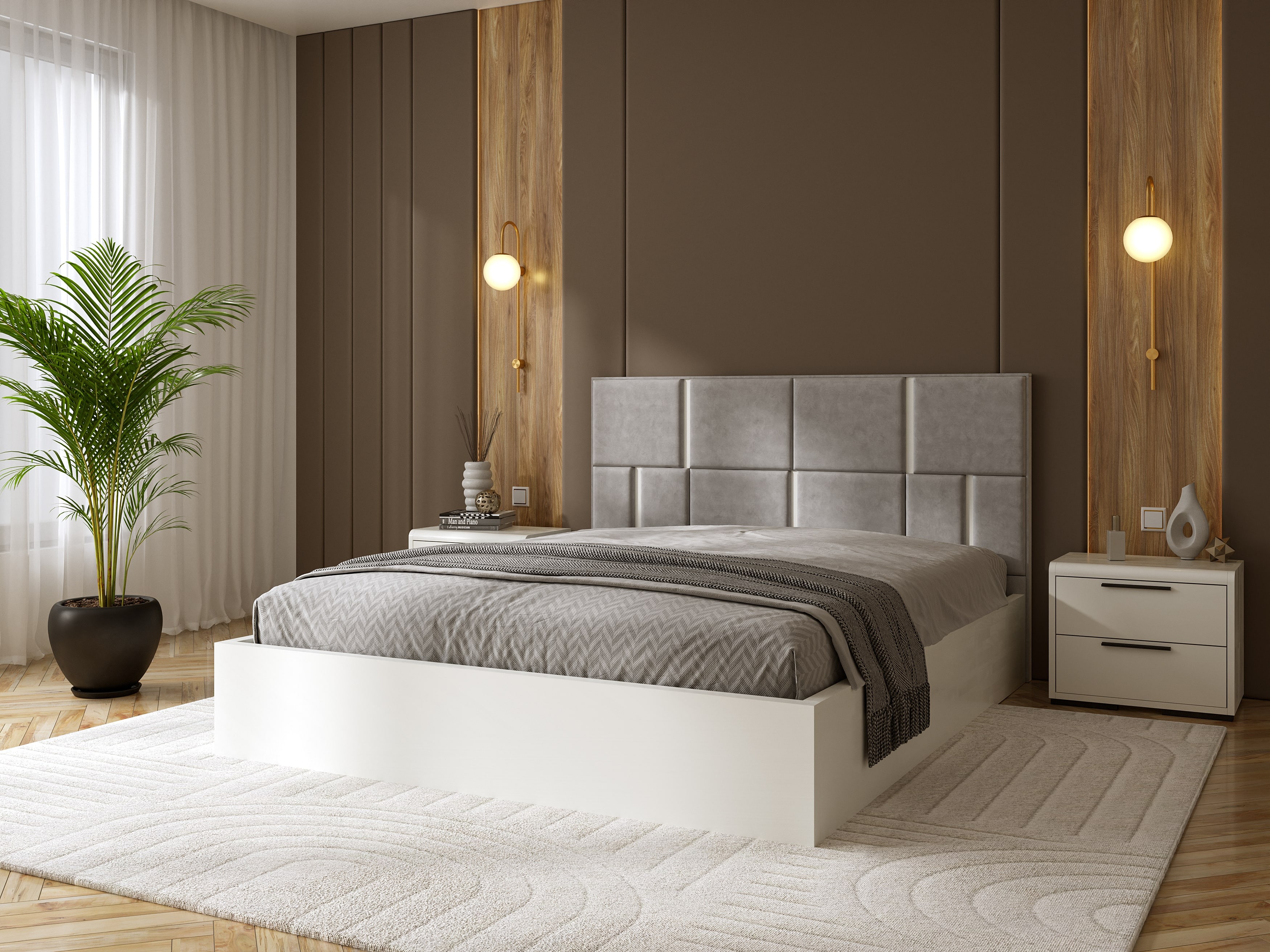 Ліжко підійде як для стандартних кімнат, так і для просторих спалень з високими стелями.