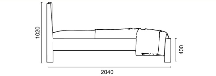 Каркас виготовлений із масиву бука — міцної та довговічної породи деревини, яка відзначається стабільністю та зносостійкістю. Натуральні відтінки дерева створюють відчуття затишку та тепла, а м’яке тканинне узголів’я додає комфорту під час відпочинку, читання або перегляду улюблених фільмів.