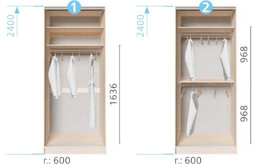 Габарити шафи можна змінювати по ширині. У цій моделі ширина шафи може бути від 900 до 1200 мм. Глибина шафи може бути 450/600 мм Висота шафи виконується 2400/2200/2100 мм.