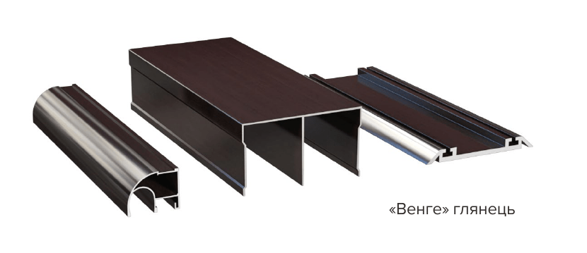 Алюміній - це те з чого полягає розсувна система шафи купе, в цій моделі розсувна система виконана в кольорі венге глянець і це дуже стильно виглядає. Також можливо виконати розсувну систему в наступних кольорах: Срібло, шампань глянець, білий глянець, золото бежеве глянець і золото бежеве матове.